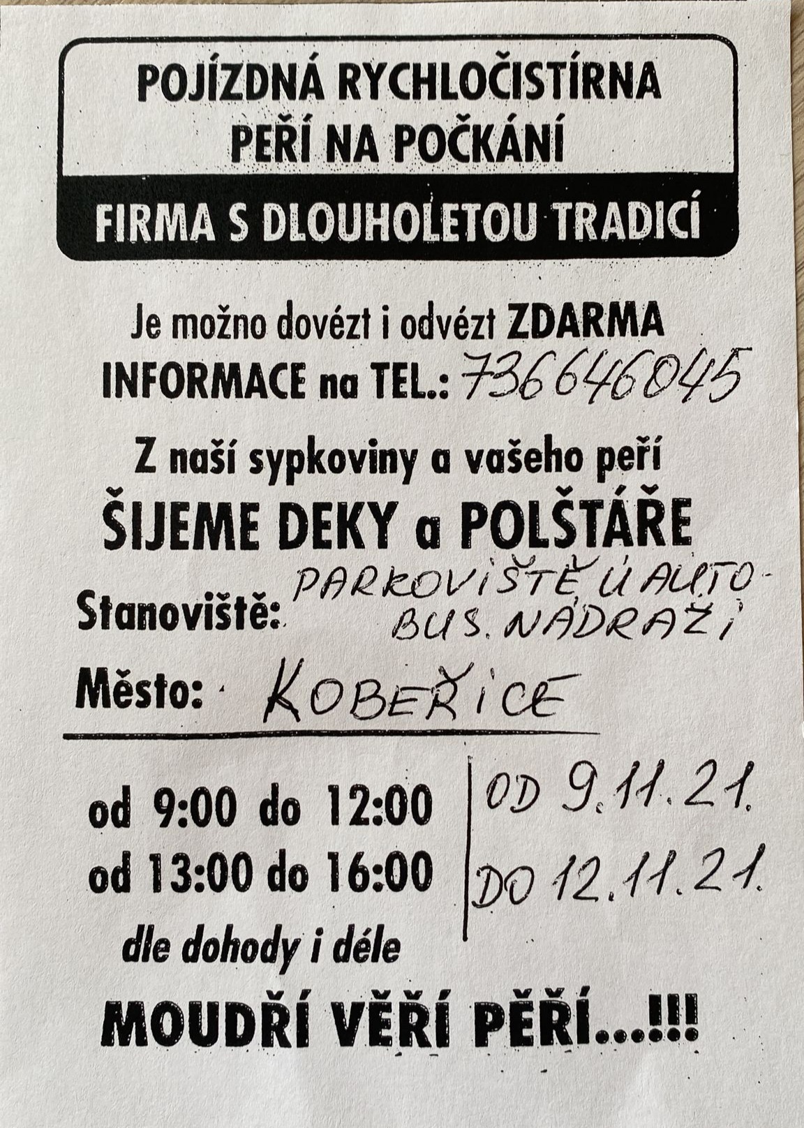 Hlášení ze dne 3.11.2021